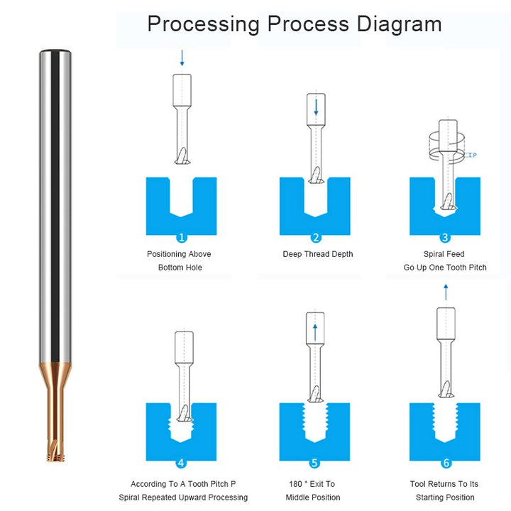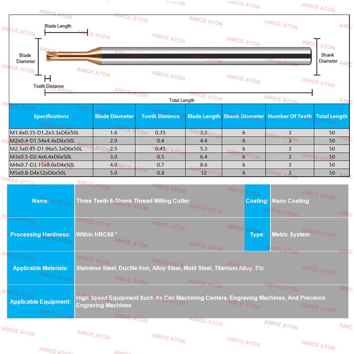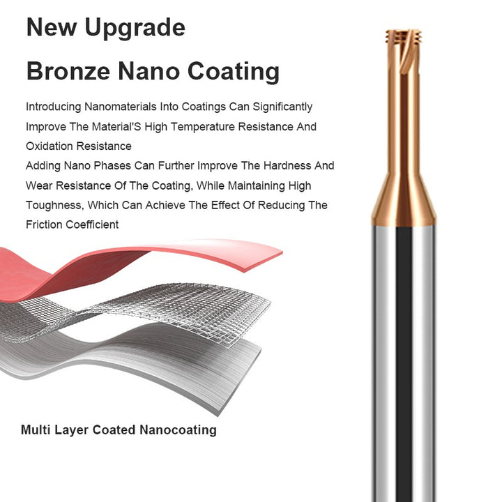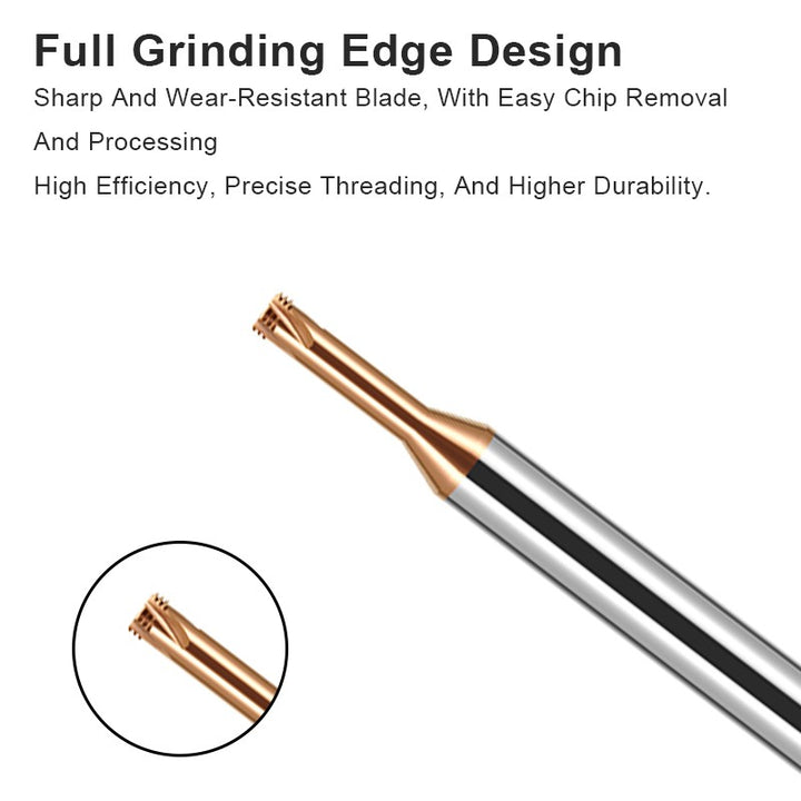 AZZKOR 6-Shank Bronze Nano Coating Three Tooth Tungsten Steel Thread Milling Cutter Machining Center Deep Hole Deep Cavity Machining Thread Cutter 50L
