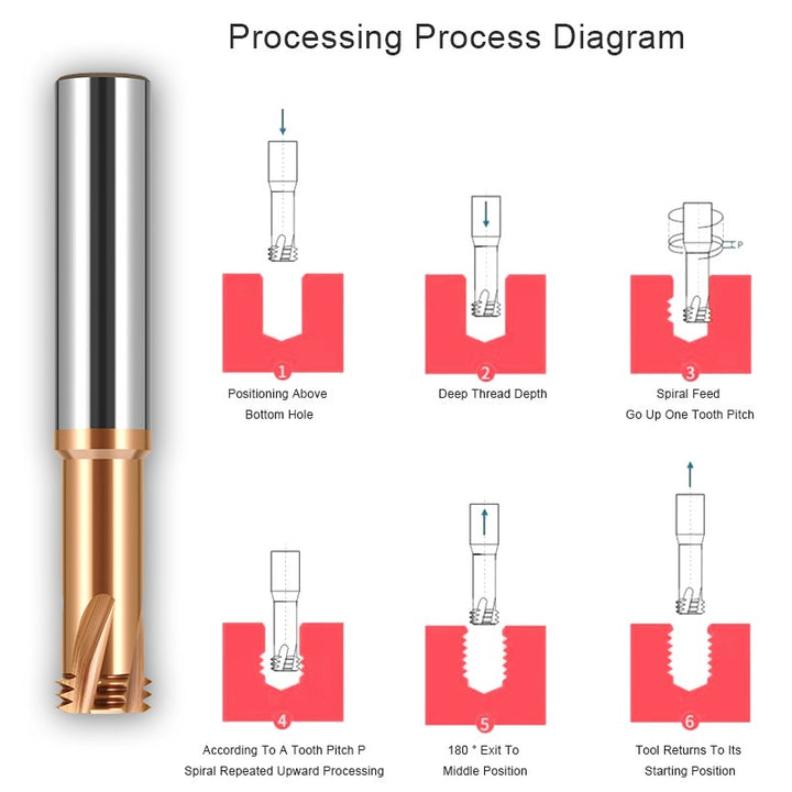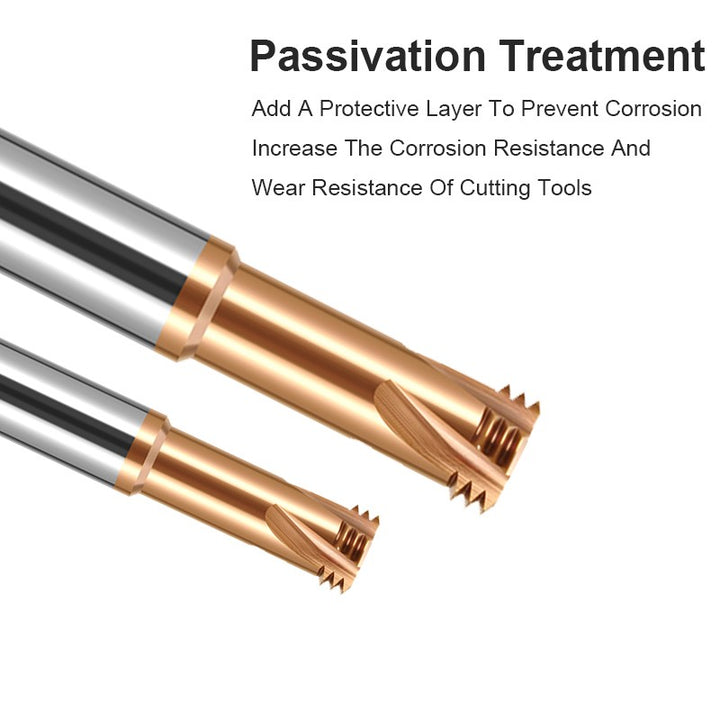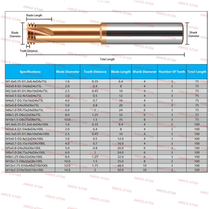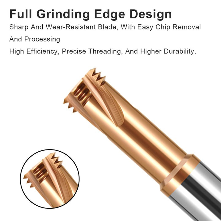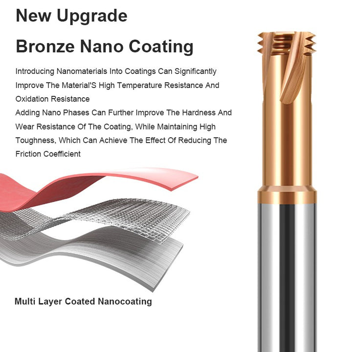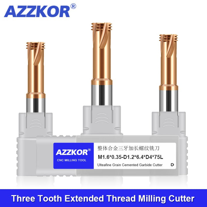 AZZKOR Bronze Nano Coating Extended Three Tooth Tungsten Steel Thread Milling Cutter Machining Center Four Deep Hole Deep Cavity Machining Thread Cutter 75L~100L