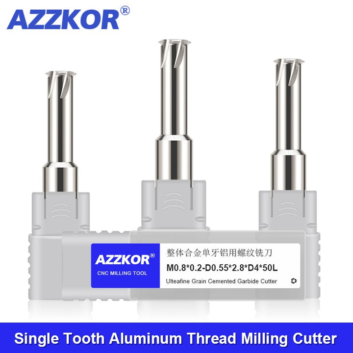 AZZKOR HRC58 Thread Milling Cutter Tungsten Steel Carbide For Aluminum Single Thread Milling Cutter CNC Machining Center Tools