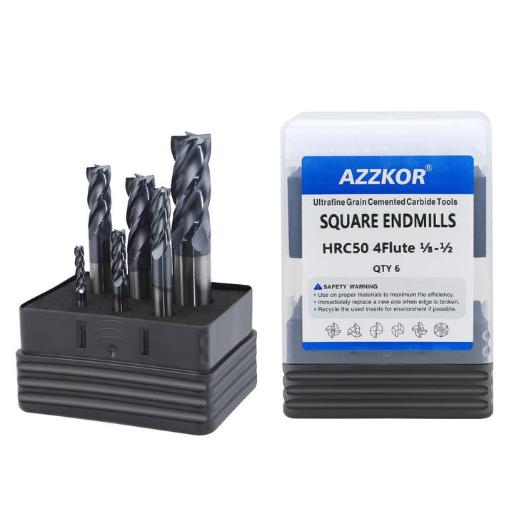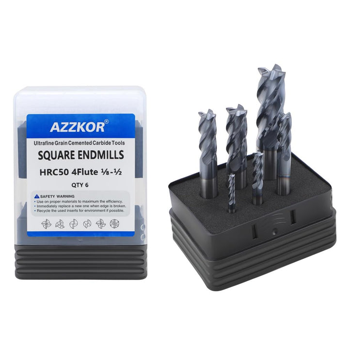 Carbide Square Inch EndMill HRC50 Double Edge 4 Flute TiAlN Coating Tungsten Steel Inch Milling Cutter for Metal Steel 1/8,3/16,1/4,5/16,3/8,1/2 Series 6pcs Set