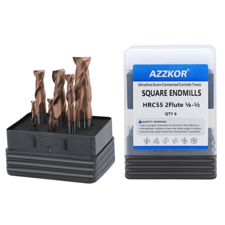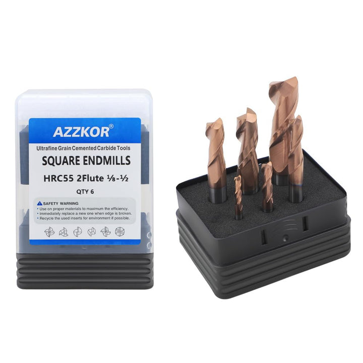 Carbide Square Inch EndMill HRC55 Double Edge 2 Flute TiSiN Coating Tungsten Steel Inch Milling Cutter for Metal Steel 1/8,3/16,1/4,5/16,3/8,1/2 Series 6pcs Set