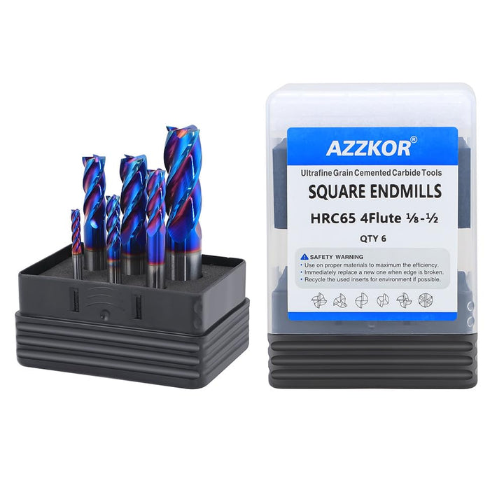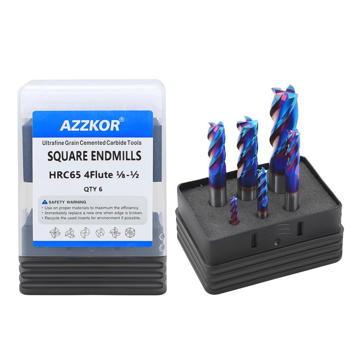 Carbide Square Inch EndMill HRC65 Double Edge 4 Flute Nano TiSiN Coating Tungsten Steel Inch Milling Cutter for Metal Steel 1/8,3/16,1/4,5/16,3/8,1/2 Series 6pcs Set